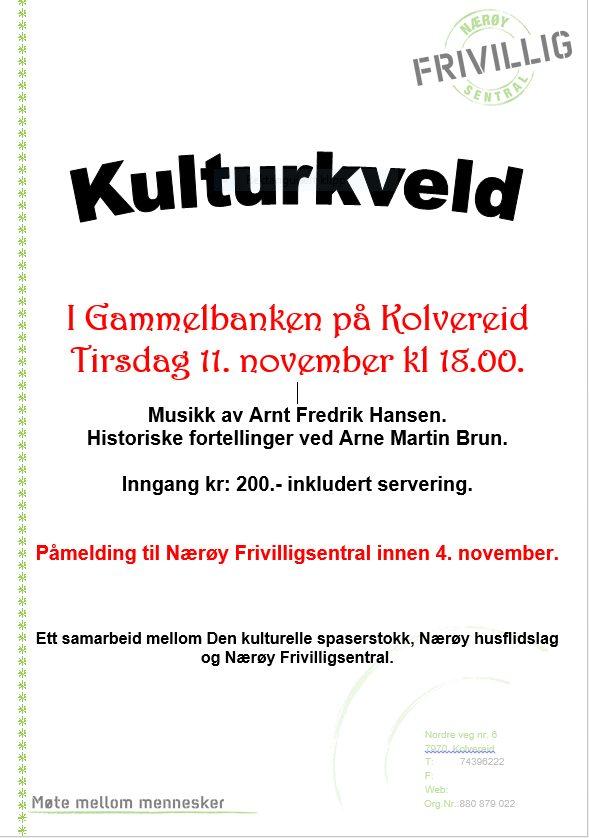 Abelvær frivilligsentral setter opp gratis skyss til arrangementet. Påmelding må derfor skje til Bjørnar Brøndbo for deltakelse og evt. skyss. Frist for påmelding fra Abelvær er torsdag 30. oktober, så melder han på videre og plassene blir holdt av til oss. Bjørnar nåes på tlf 911 71 300 evt send sms