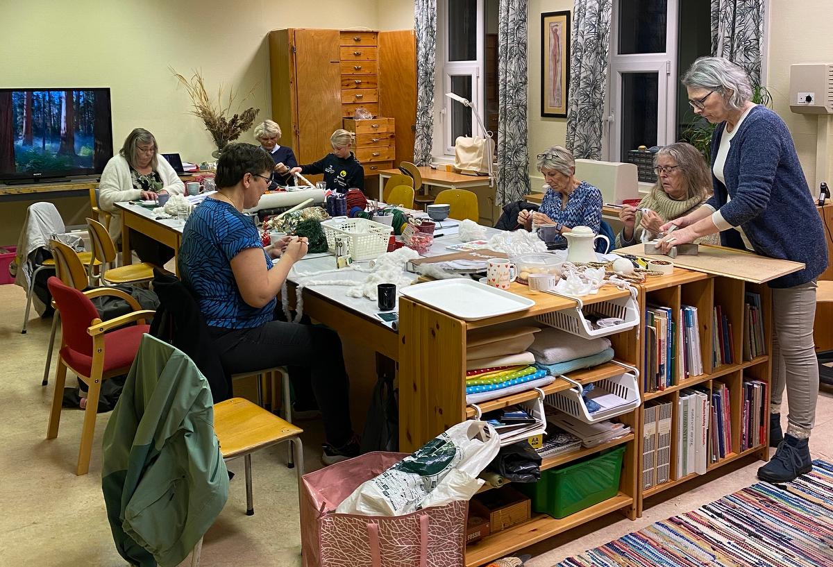Torsdag kveld var det fullt på aktivitetsrommet. Vi møttes for å prøve og feile med papir, tapeter, garn og streng. Koselig var det, om vi ikke var så produktive akkurat. Aktivitetsrommet er for alle, og kan benyttes når det måttepasse. På dagtid er det selvsagt åpent, utover det er det bare å avtale bruk. Her tror vi det kan bli mang en hyggelig stund fremover