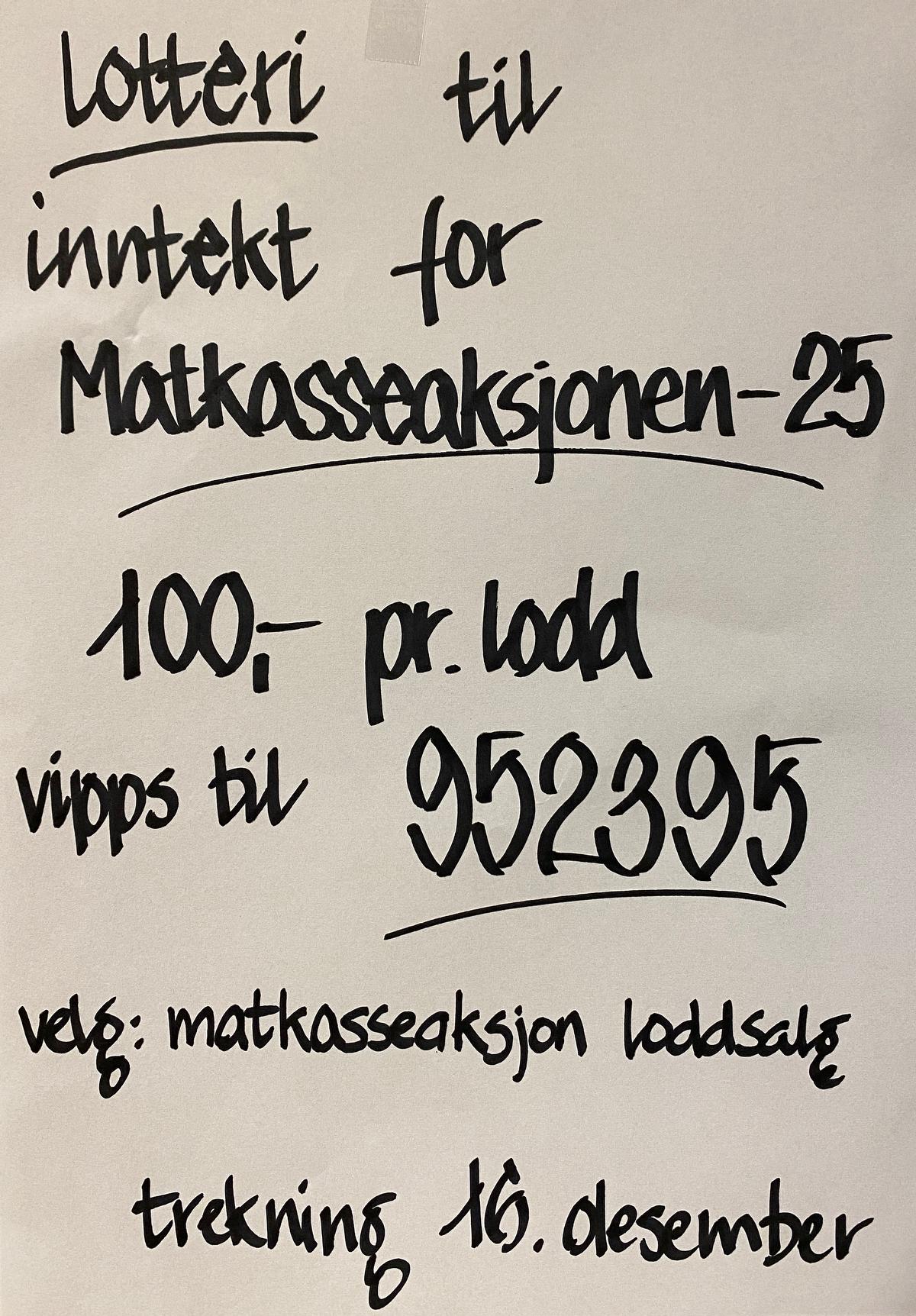 100,-pr lodd og masse flotte premier, hjelp oss å hjelpe noen som trenger det til jul